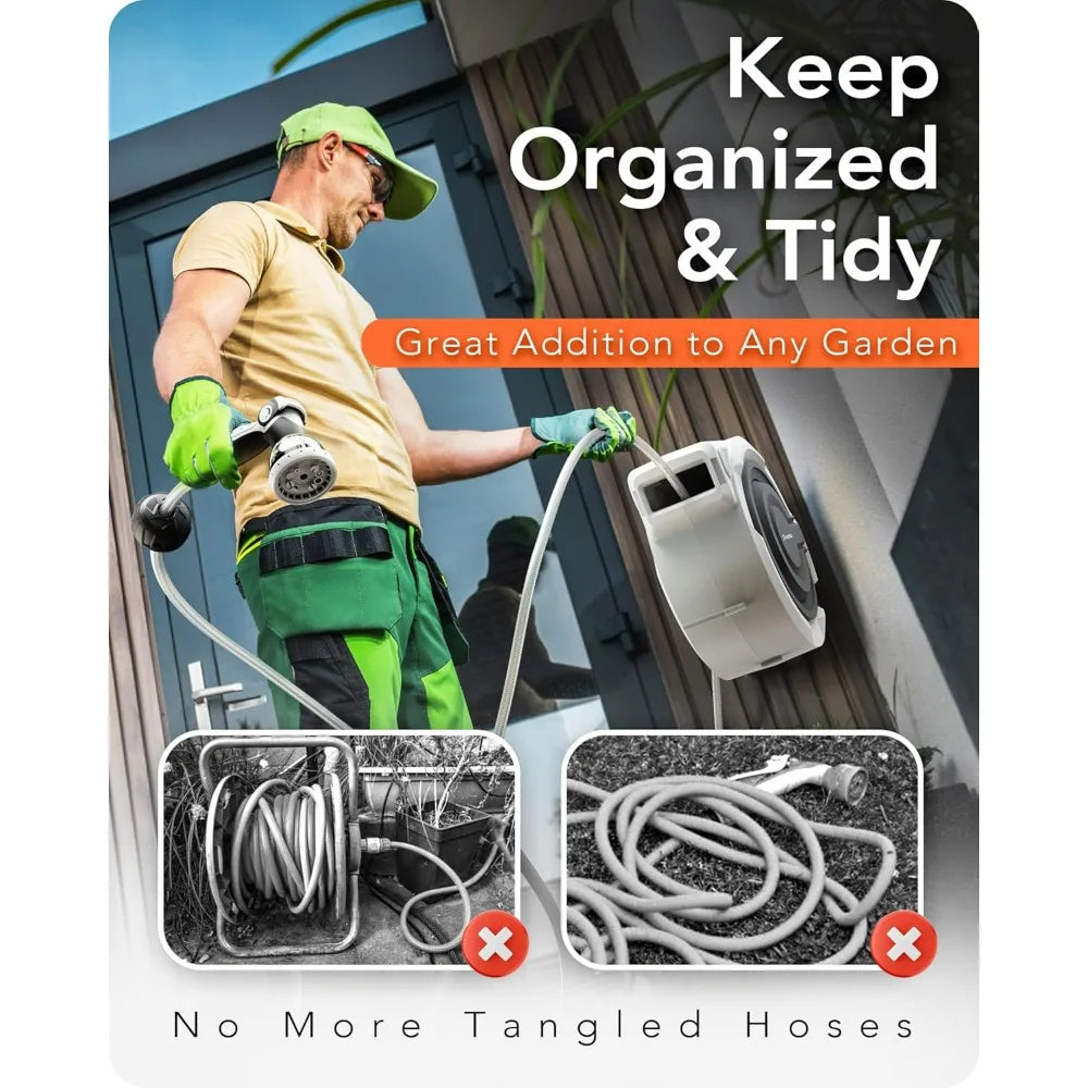 100-Foot Automatic Wall Mount Retractable Garden Hose Reel